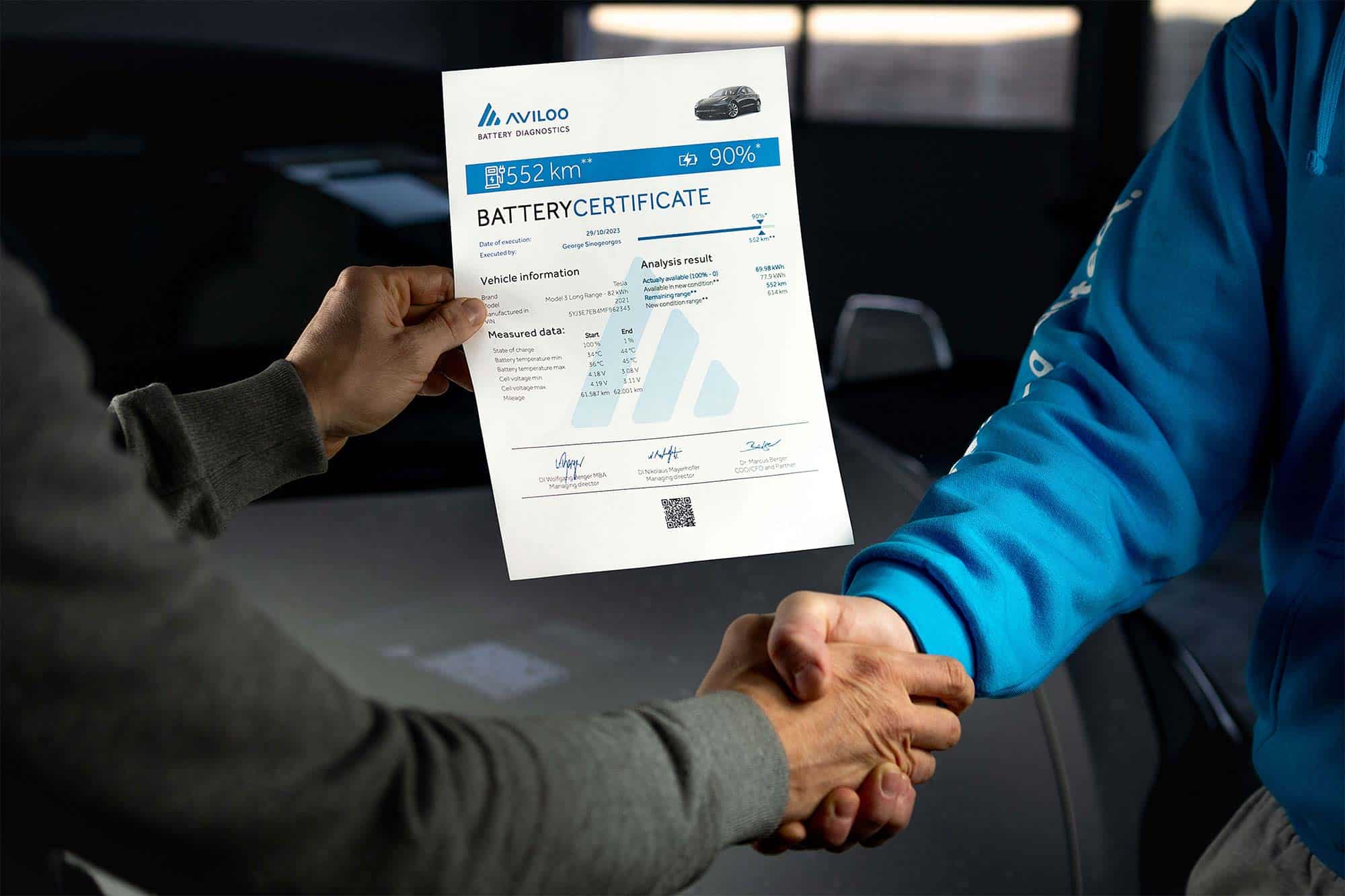 Besitzen auch Sie ein Elektro- oder Plug-in-Hybridfahrzeug und haben sich schon einmal gefragt, wie es um die Traktionsbatterie Ihres Fahrzeugs steht? Wir bieten den zertifizierten PREMIUM Batterietest von AVILOO an. Dieser ermittelt detailliert, objektiv und herstellerunabhängig unter anderem den Gesundheitszustand (SoH) und die Reichweite Ihrer Batterie.